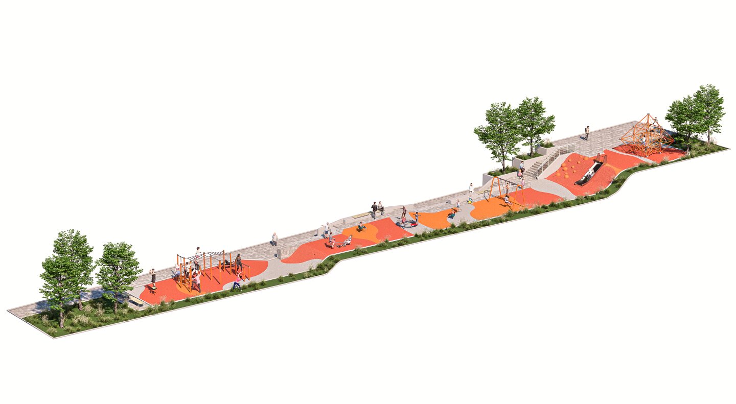 Раније прихваћен изглед игралишта, пројектован с акцентом на безбедност и функционалност, биће обогаћен опремом данског произвођача Kompan. Игралиште ће бити опремљено разноврсним елементима који подстичу активност и креативност, чинећи га идеалним местом за игру и дружење. Сертификовано и постављено на квалитетну колоритну гумену подлогу, игралиште је намењено деци од 2+ година.